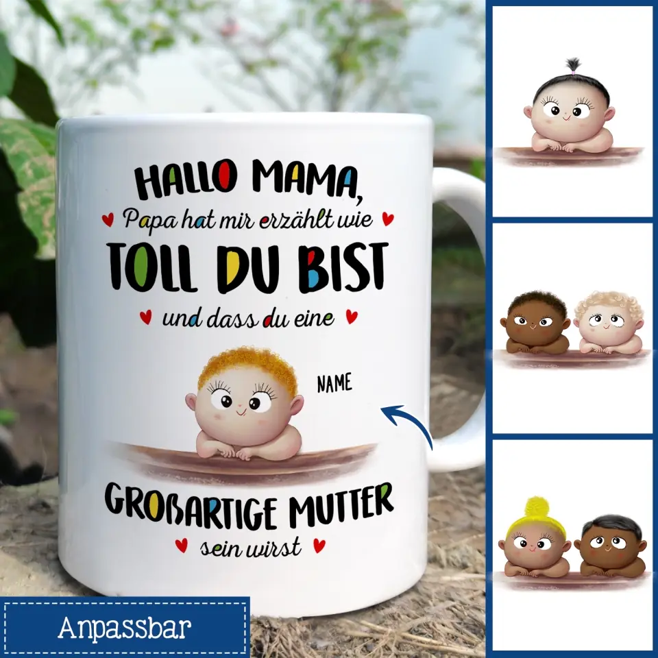 Personalisierte Tasse für Mama | personalisierte Geschenke für Mutter | Hallo Mama Großartige Mutter
